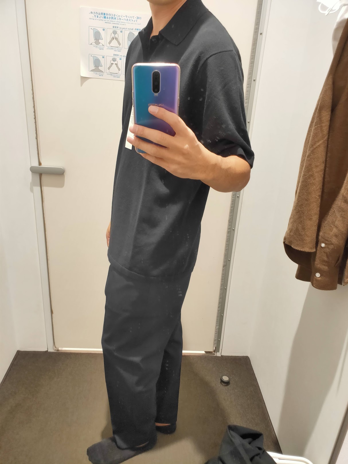 2021年春夏ユニクロUファインゲージポロシャツのブラックL横